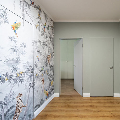 2. Единый материал отделки. Полотно и прилегающие поверхности должны покрываться одним рулоном обоев, одной партией штукатурки или одной коллекцией панелей. Даже лёгкое отличие фактуры или партийного цвета даст «пятно» на стыке.